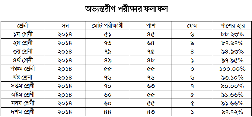 অভ্যন্তরীণ পরীক্ষার রেজাল্ট